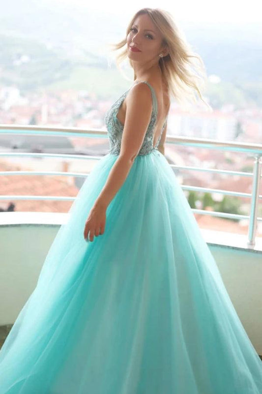 Alondra | A-line V neck Tulle Lace Long Prom Dress Evening Dress