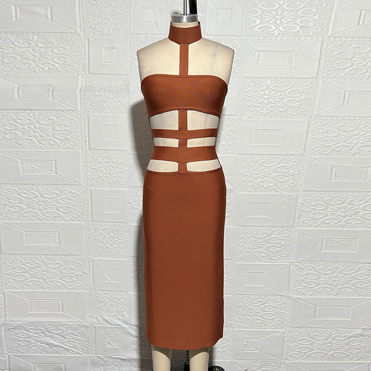 Cross-Back Plunge V Ruffle Maxi Dress in Smoky Blue