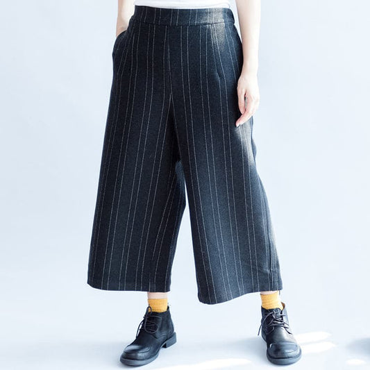 dark gray casual woolen cotton pants fashion striped wide leg pants