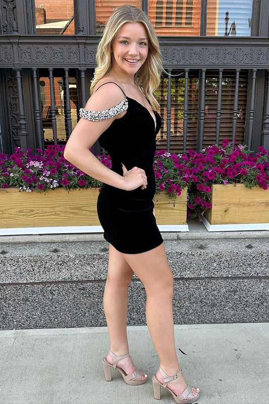 Delilah |Sheath Velvet Homecoming Dress with Beading