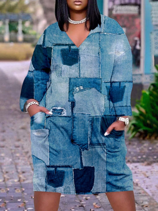 Dresses for Women 2023 Spring Summer New Digital Abstract Print V-neck Dress Temperament Long-sleeved Short Skirt Streetwear