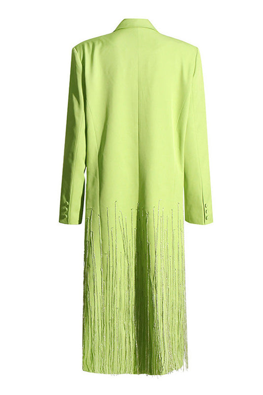Edgy Lapel Shoulder Pad Double Breasted Oversized Long Tassel Blazer