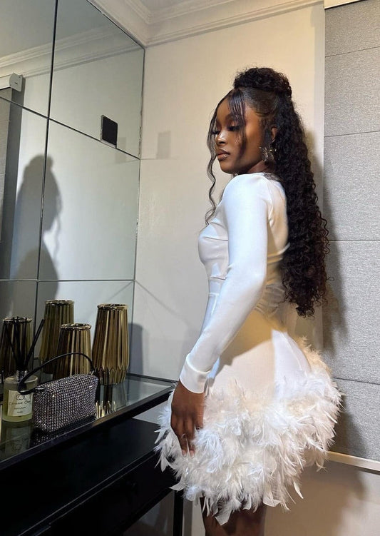 Feather Patterned Fringed High Waisted Chiffon Skirt