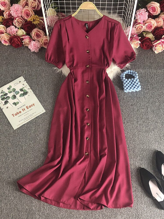 Female Clothing New Korean Version Loose Short Sleeve Dress with Waist Wrapped Cardigan Style Long Dress Formal Occasion Dresses