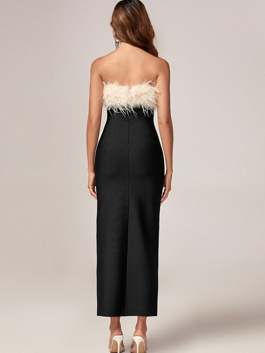 Feathers Backlesss Pink Plunging V-Neck Tulle Long Formal Dress