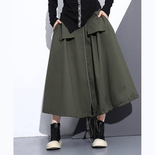 fine army green natural cotton skirt oversize A line skirts traveling boutique pockets drawstring cotton skirt