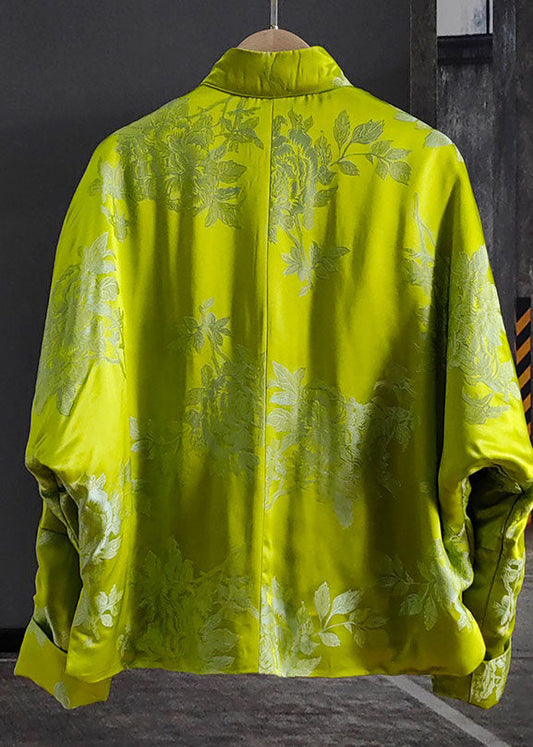 Fine Green Silk Jacquard Chinese Button Fine Cotton Filled Coats Winter