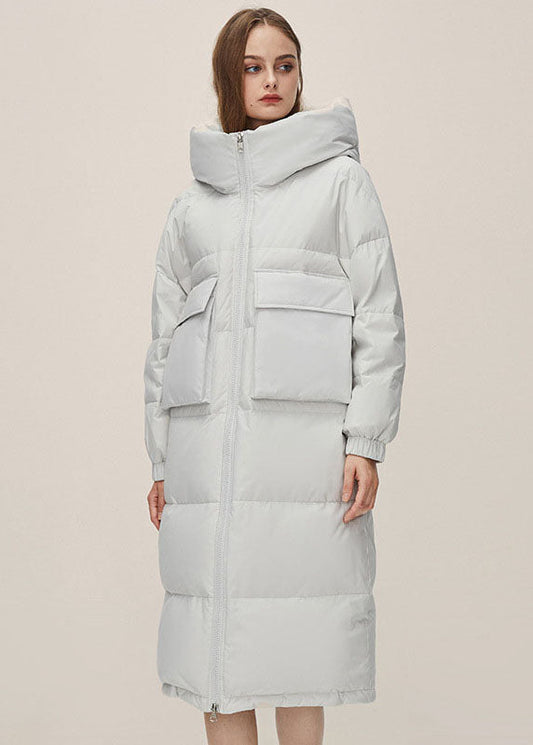 Fine Light Grey Stand Collar Hooded Pockets Duck Down Puffers Jackets Winter