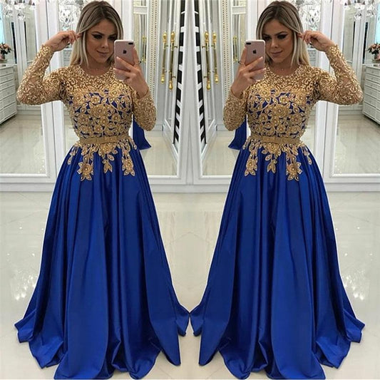 Gold Beads Lace Appliques Evening Dress with Sleeves