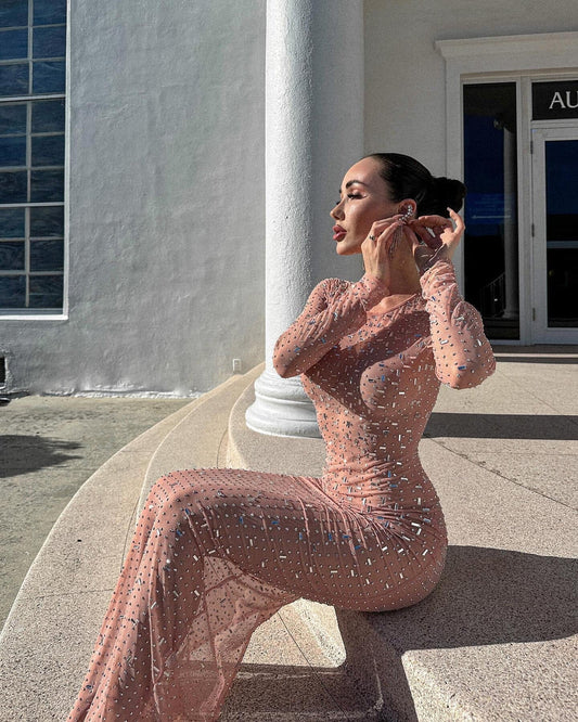 Glitter V-Neck Backless Sequins Long Mermaid Prom Dress