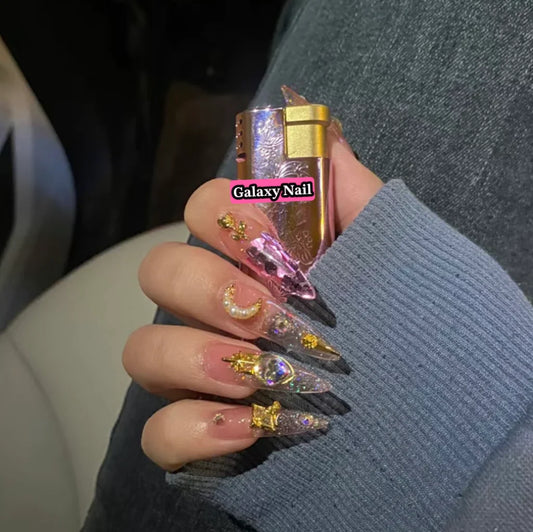 Handmade Pink Glittery Y2K Fake Nail With Glue Detachable Luxury False Nails Tips Reusable Press On Nails Coffin Manicure Art