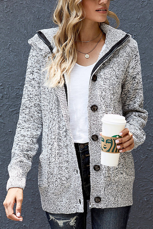 Knitted Cardigan Sweater with Hood