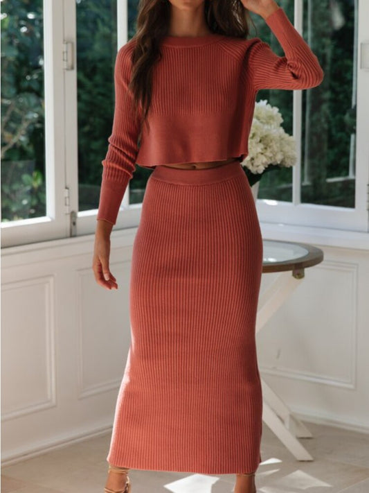 Knitted Sweater Sets To Dress Autumn Winter New Fashion Long Sleeved Top Split Hem Long Skirts Womens 2 Piece Outfit Set Dresses