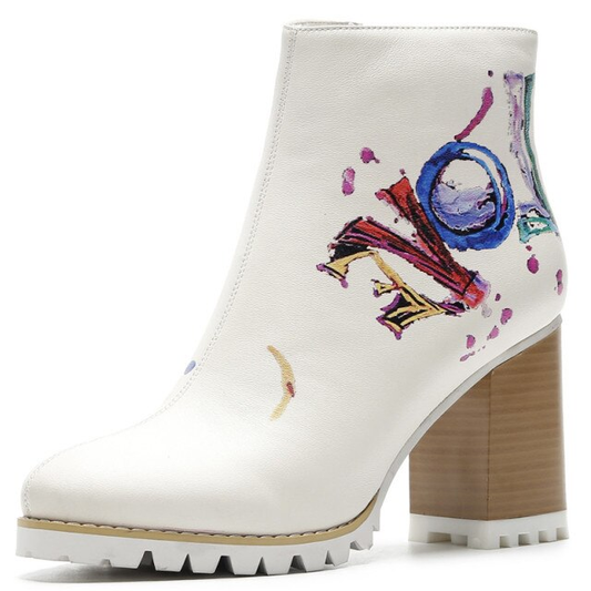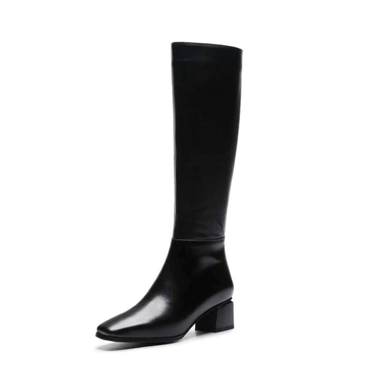 Kristen Women's Black High Heel Snow Boots with Pearl Mid-Calf Decoration