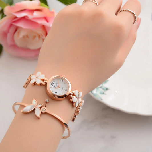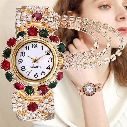 Luxury Crystal Gold Bracelet Rhinestone Quartz Wristwatches for Women