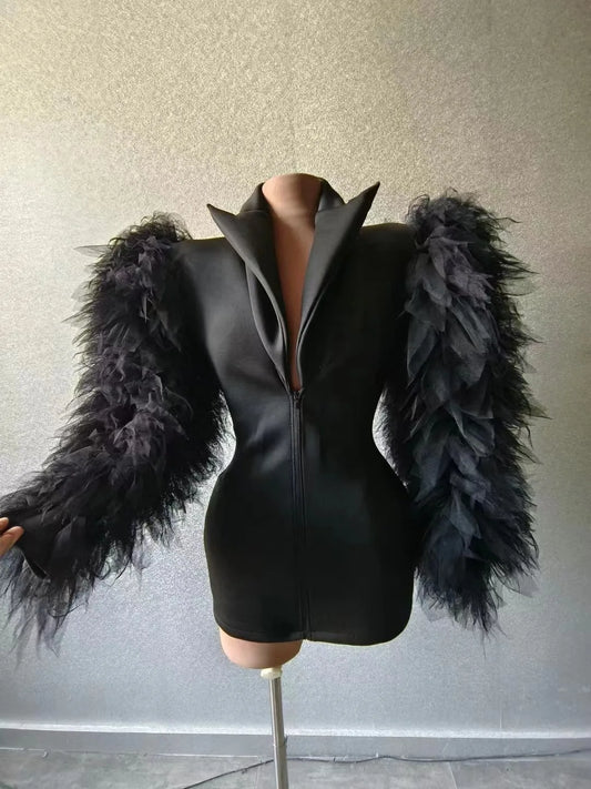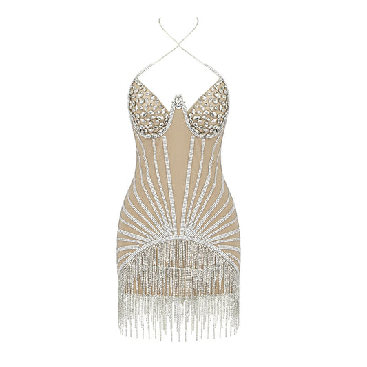 Luxury Sparkly beading High Neck Sheer Tulle Long Prom Dress