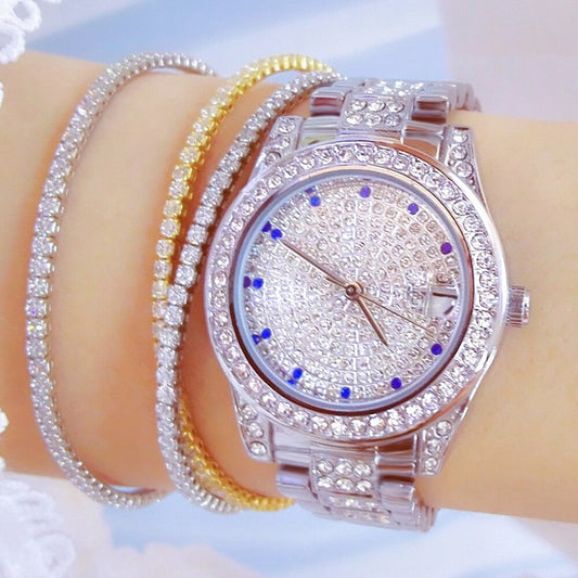 Luxury Women's Crystal Diamonds Decor Stainless Steel Dress Wristwatch
