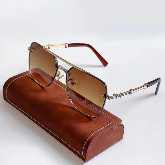 Men and Women Vintage Luxe Semi-rimless Anti-UV Square Sunglasses