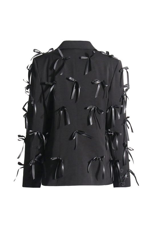 Modern Lapel Collar Long Sleeve Single Breasted Oversized Party Bow Blazer
