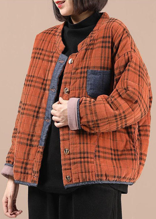 Modern Orange Plaid Fine Cotton Filled Parka Jacket Winter