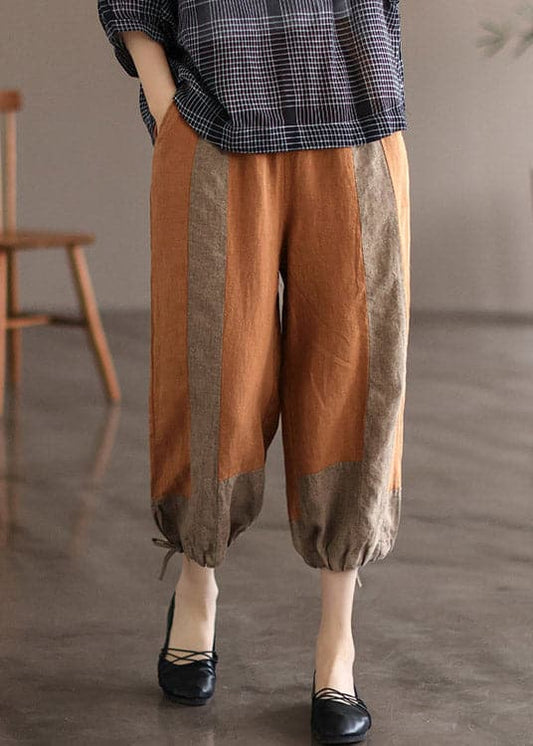 Modern Orange Pockets Patchwork Linen Lantern Pants Summer
