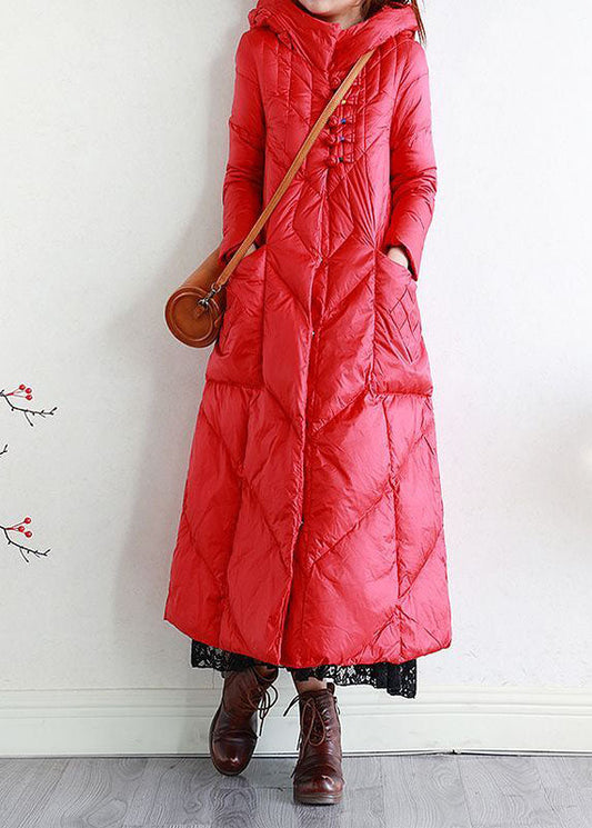 Modern Purple Hooded Oriental Button Lengthen Duck Down Puffer Coat Winter
