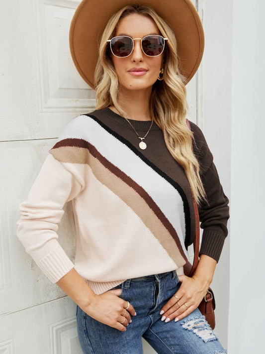 New Autumn Winter 2022 Women's Diagonal Stripe Casual Knit Pullover Round Neck Fashion Women's Long Sleeve Pullover Sweater Tops