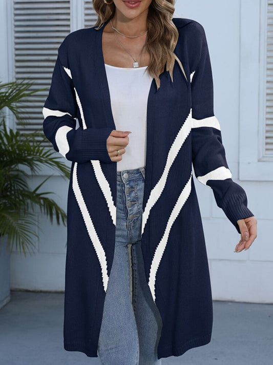 New Autumn Winter Women's Sweater Coat Fashionable Solid Color Long Hooded Knitted Cardigan Street Clothes Oversized Cardigan