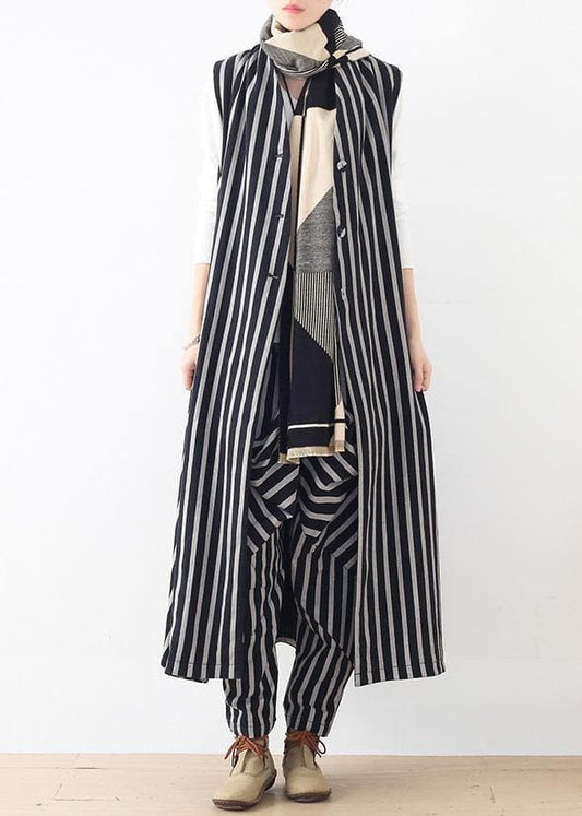 New style beige loose casual mid-length striped Vest elastic waist breeches suit