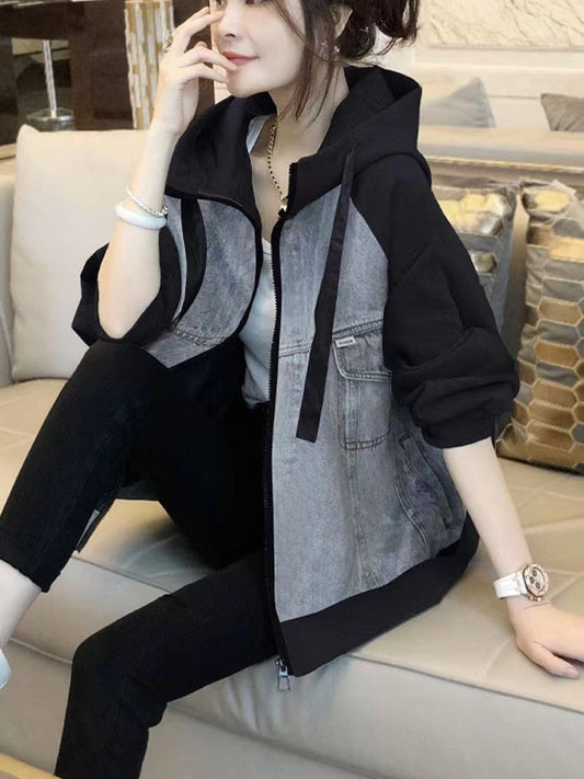 New Spring Autumn Middle and Long Windbreaker Women's Waist Is Slim Splicing Denim Jacket Women Denim Jacket Women Coats Tops