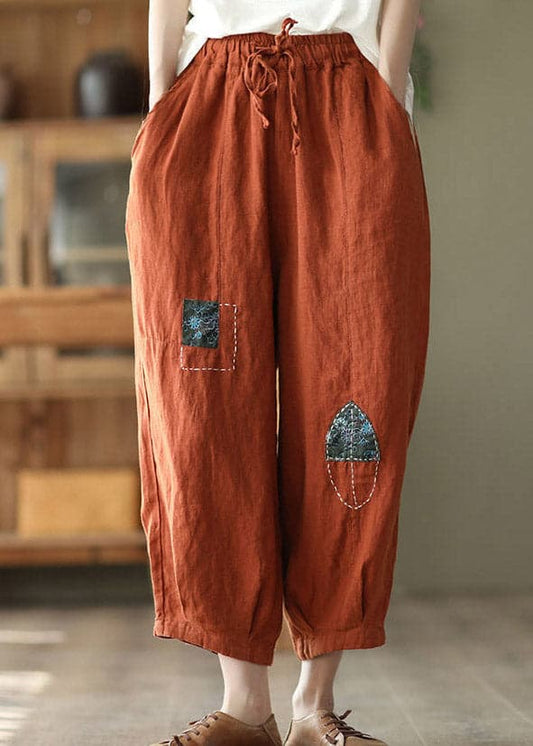 Orange Pockets Tie Waist Linen Harem Pants Summer