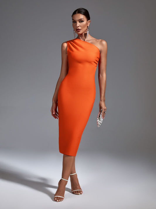 Orange Draped Midi Dress