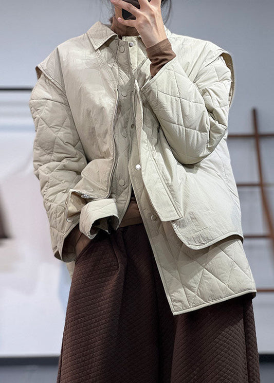 Original Design Beige Peter Pan Collar Oversized Print Duck Down Puffers Jackets Winter