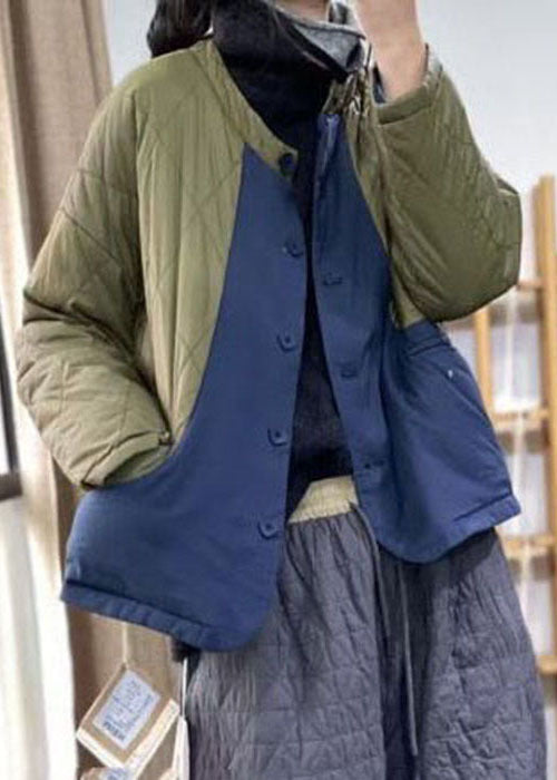 Original Design Blue Oversized Pocket Patchwork Fine Cotton Filled Parka Winter