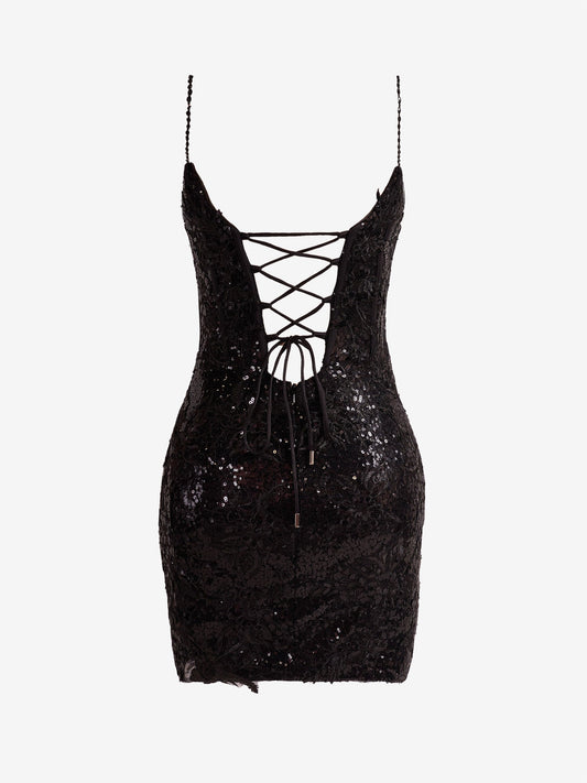 Orla | Black Sheath Spaghetti Straps Sequined Lace Homecoming Dress