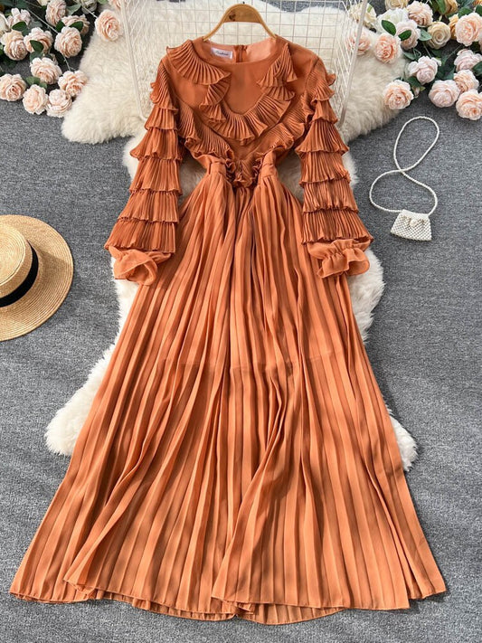 Party Dresses 2023 New V-neck Pleated Cake Sleeve Waist Long Skirt Fashion Sexy Dress Formal Occasion Dresses Woman Clothing