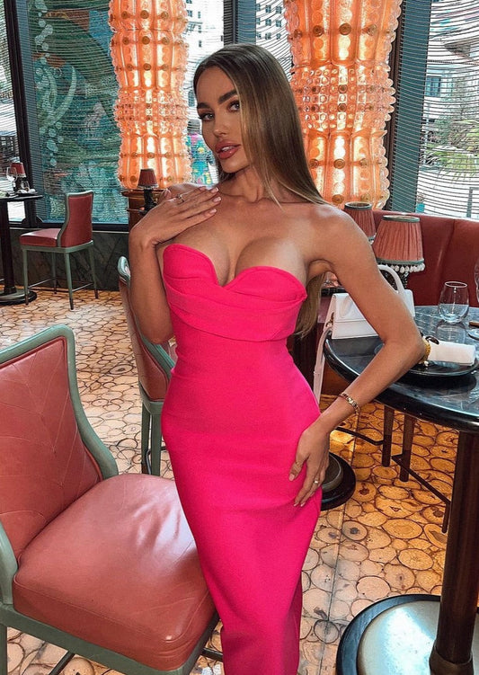 Pink Sequin Keyhole Open Back Mermaid Long Dress with Slit