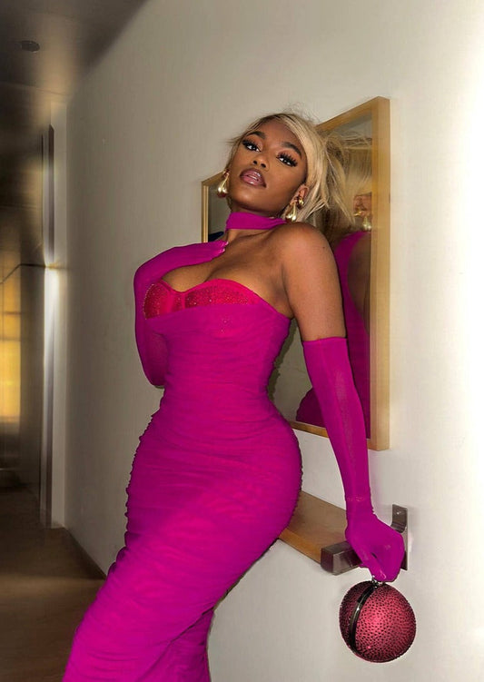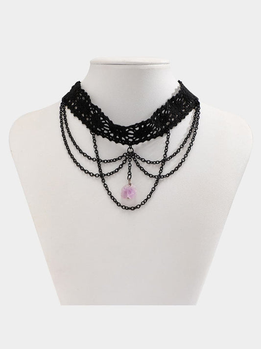 Purple Crystal Pendant Tassel Necklace MSE00163