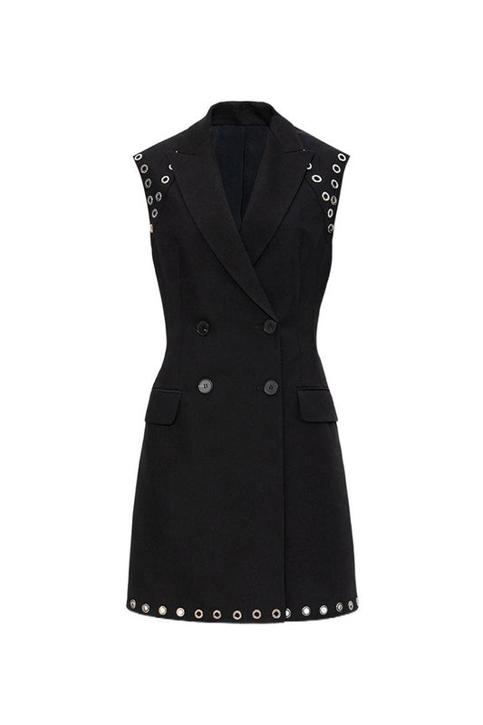 Punk Lapel Sleeveless Metallic Grommet Double Breasted Blazer Mini Dress