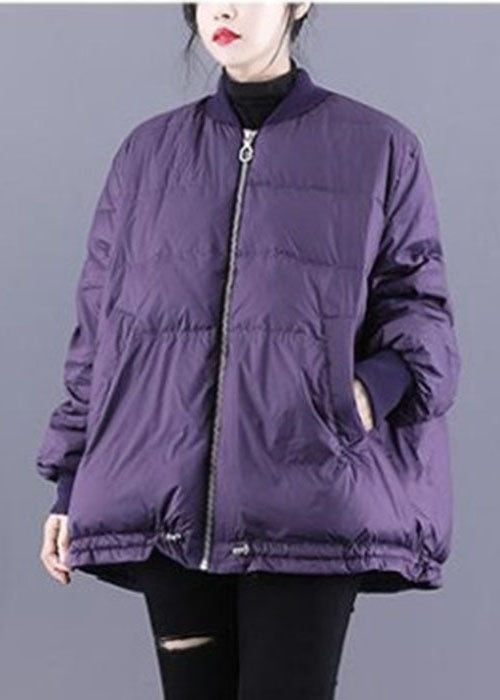 Purple Casual Duck Down Winter Coats Zip Up Winter