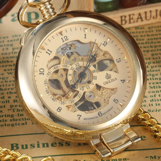 Steampunk Unisex Hollow Skeleton Hand Wind Mechanical Pocket FOB Watch