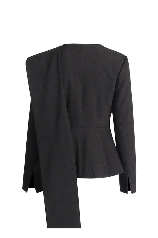 Stylish Crew Neck Draped Scarf Long Sleeve Cinch Waist Peplum Blazer