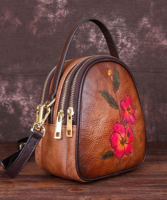 Stylish Brown Print Paitings Calf Leather Backpack Bag