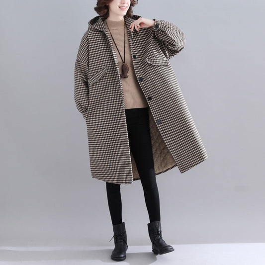 thick plaid womens parkas trendy plus size hooded warm winter coat Luxury long sleeve winter coats