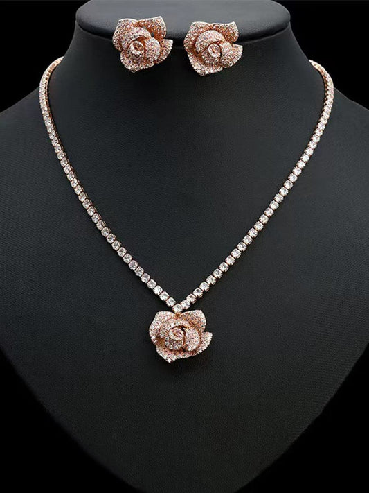 Vintage Floral Zircon Necklace and Earrings Set MSN110818