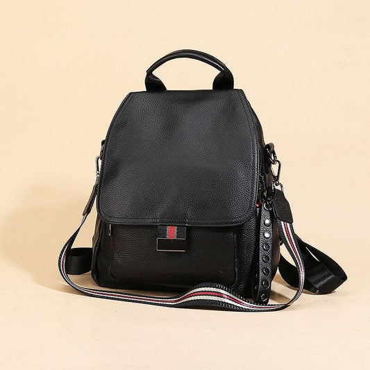 Vintage Fashion Women's Black Genuine Leather Shoulder Bag Backpack