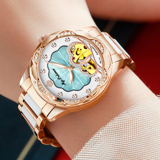 Women's Mechanical Diamond Automatic Skeleton Ceramic Strap Wristwatches