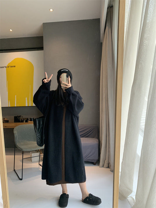 2023 Lazy Chic Solid Color Knit Cardigan: Thickened, Buttonless, Mid-Length Sweater Jacket for Women in Fall and Winter