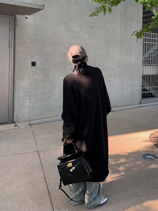 2023 Thickened Stand Collar Zip-Up Knit Cardigan: Long and Relaxed Women's Fashion Sweater Jacket for Cozy Fall-Winter Style