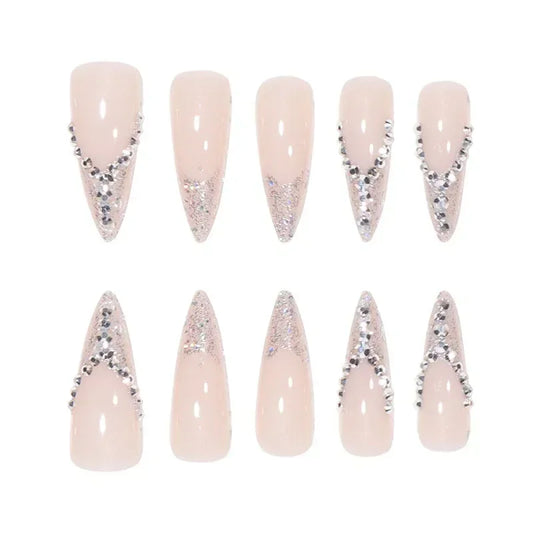 24Pcs French Almond False Nails Glitter with Rhinestones Wearable Fake Nails Artificial Simple Full Cover Press on Nails Tips
